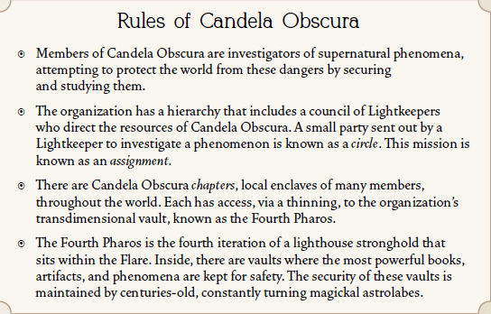Candela Obscura is the name of the paranormal secret society charged with protecting the world from deadly magickal phenomena.